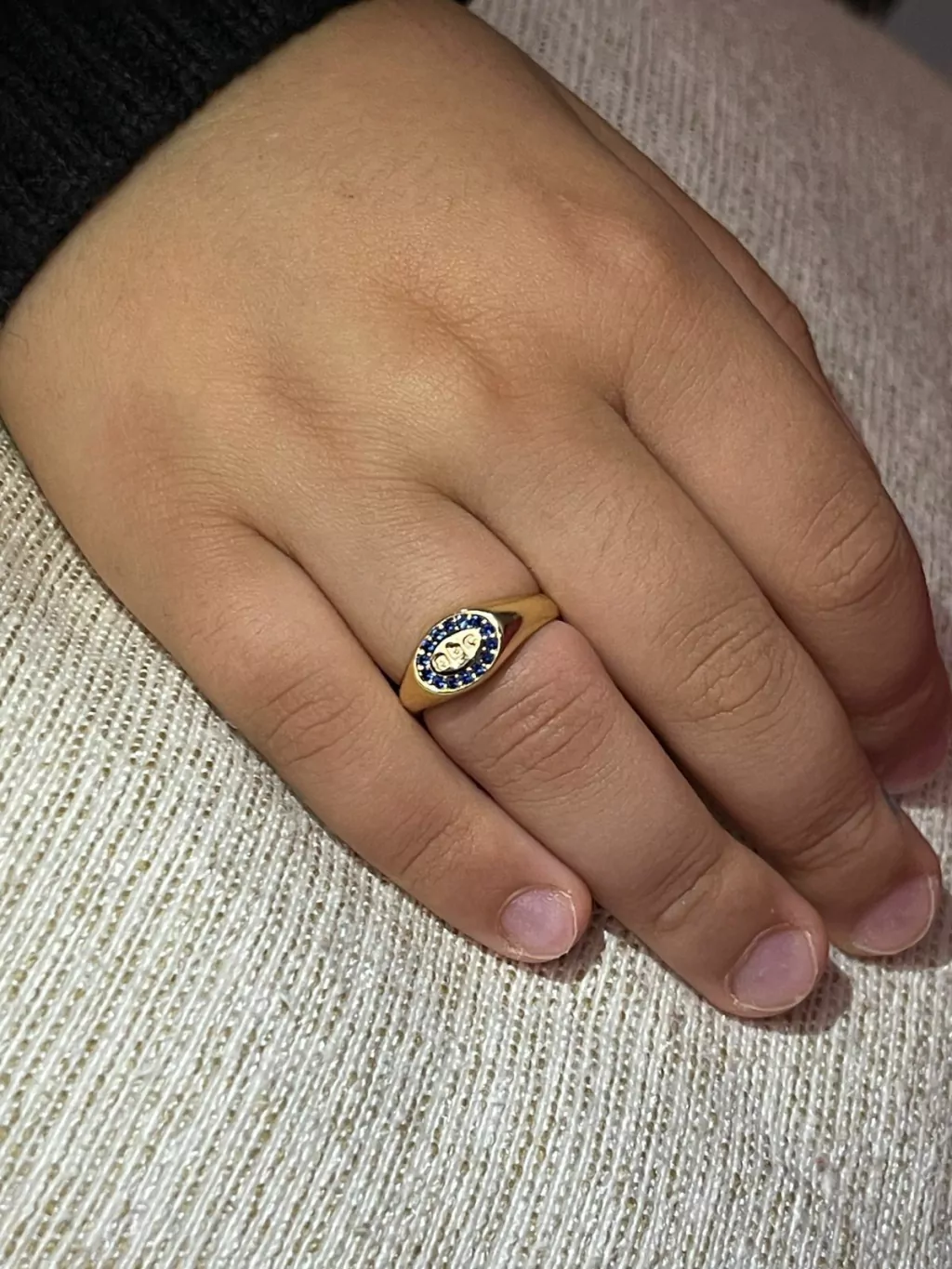 Anel infantil de formatura ABC com pedras de zircônia . Uma peça linda e delicada para registrar aquela data linda e eterna que é a Formatura. Semijoia banhada á ouro 18k revestida com uma camada exclusiva de verniz antialérgico.