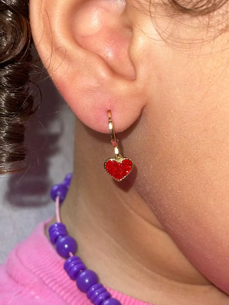 Puro charme e brilho! O brinco infantil de argolinha com coração com glitter banhado a ouro é um mimo encantador que deixa o visual das pequenas ainda mais especial.