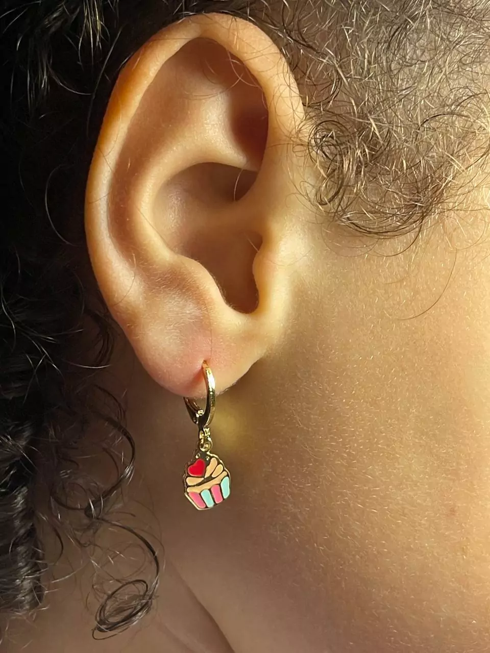 Brinco Argolinha CupCake. Um brinco delicado e um caso de amor para as apaixonadas por doces. Semijoia banhada á ouro 18k revestida com uma camada exclusiva de verniz antialérgico.