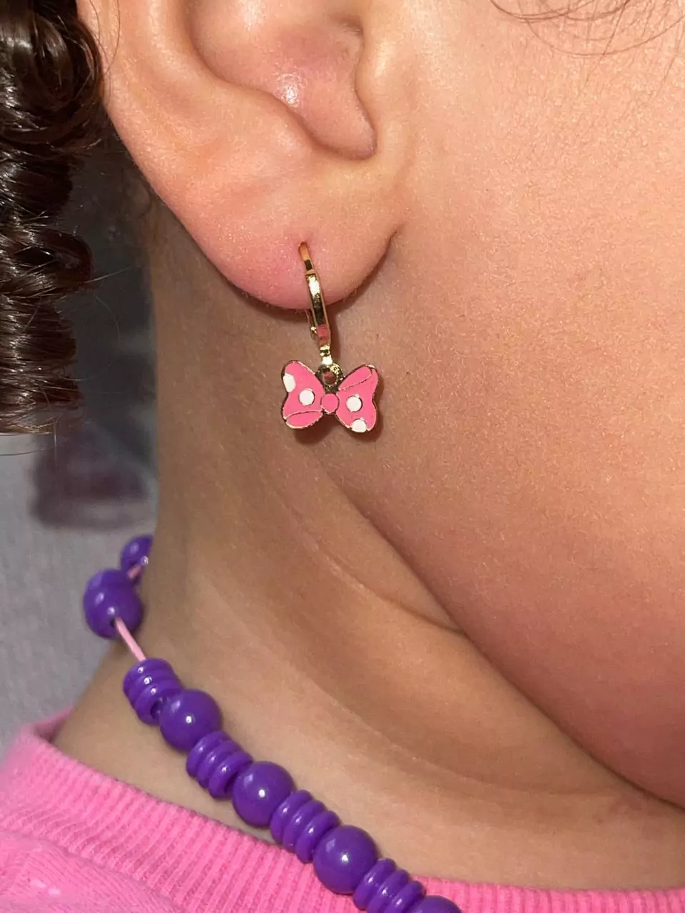 Brinco Argolinha Laço Minnie. Semijoia banhada á ouro 18k revestida com uma camada exclusiva de verniz