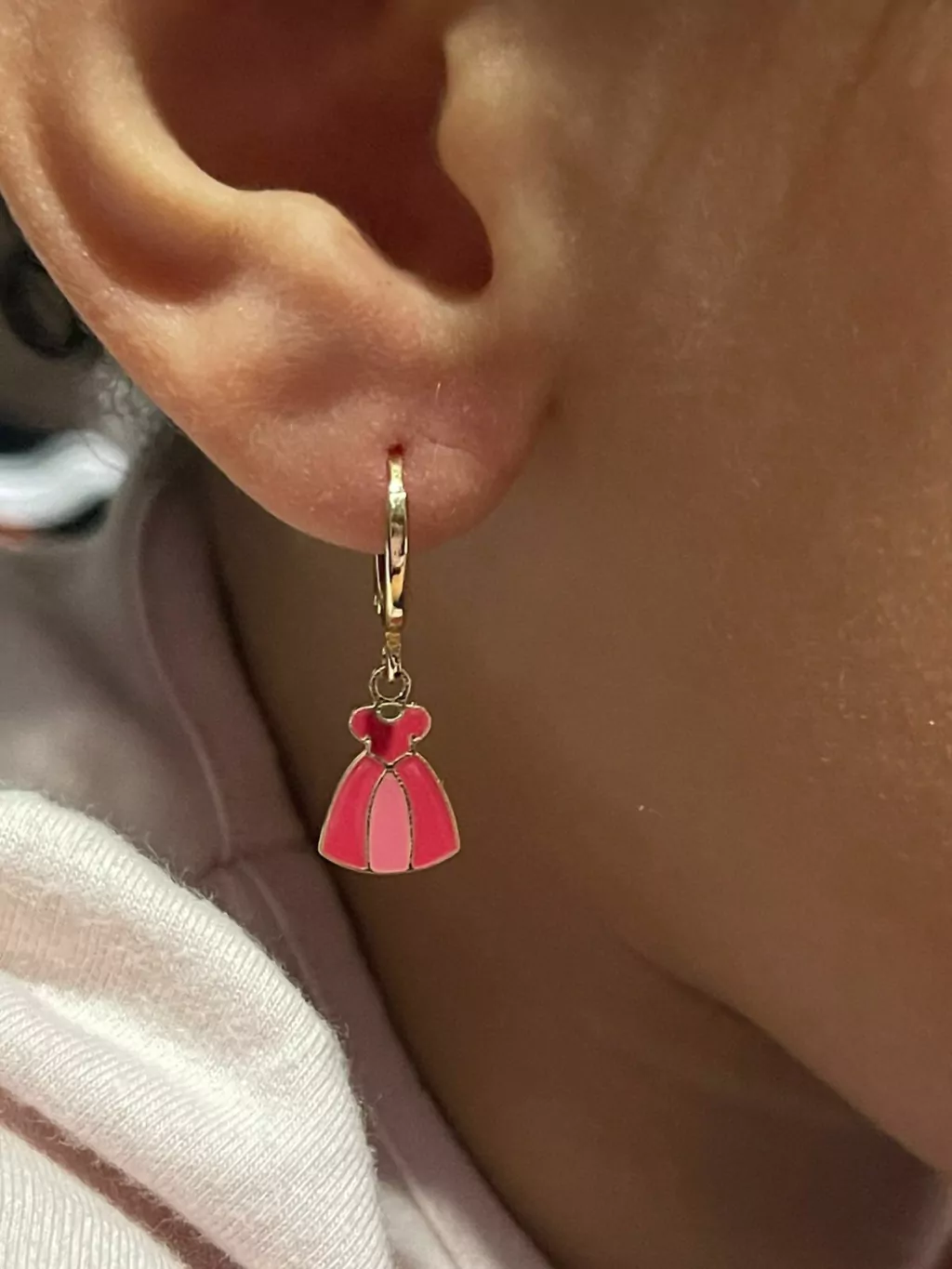 Brinco Argolinha Vestido rosa de Princesa. Semijoia banhada á ouro 18k revestida com uma camada exclusiva de verniz antialérgico.